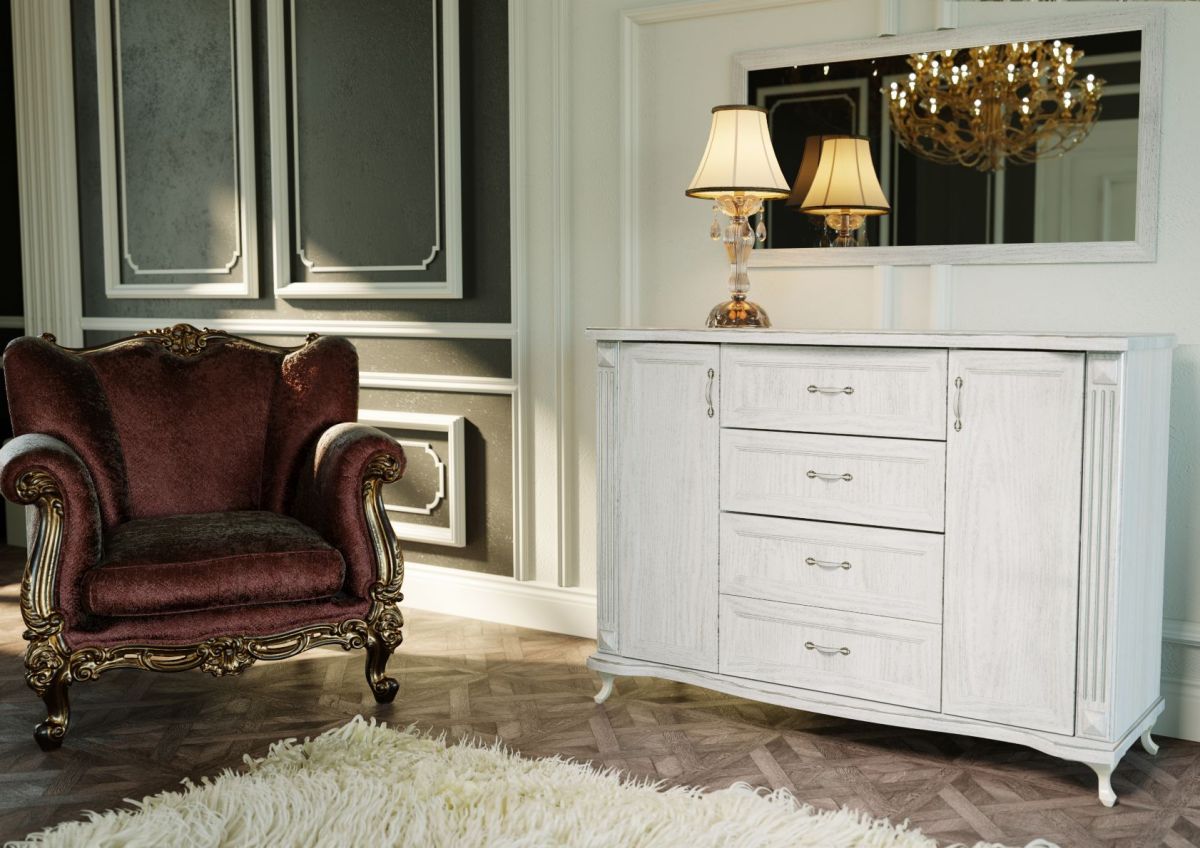 Комод Адажио МДФ (дуб белый/белое дерево/пат.серая)